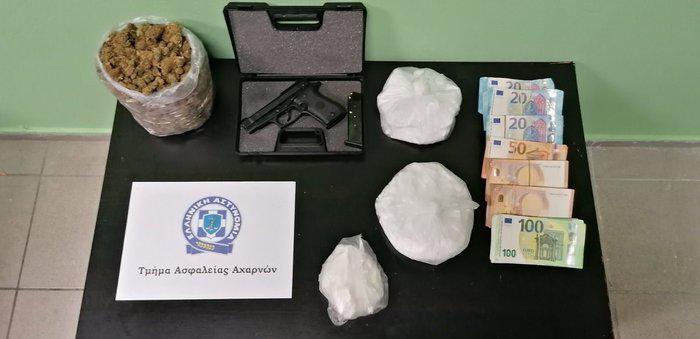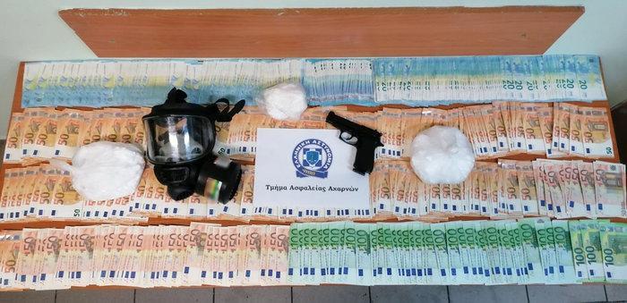 κατασχέσαμε μεταξύ άλλων, ποσότητες κοκαΐνης, ηρωίνης, κάνναβης, 42.150 ευρώ, (6) αυτοκίνητα, πιστόλι, φυσίγγια καθώς και μηχανήματα και εργαλεία που αποτελούσαν πλήρες εργαστήριο περαιτέρω διαδικασίας τυποποίησης – νόθευσης κοκαΐνης.