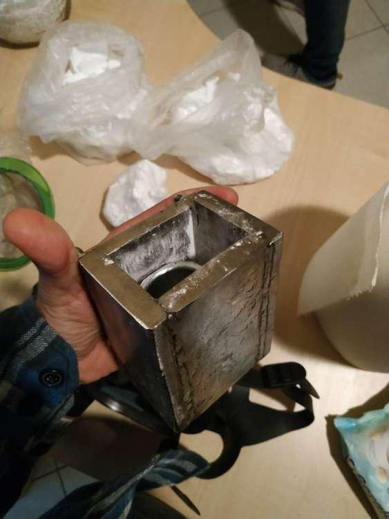 μηχανήματα και εργαλεία που αποτελούσαν μέρος του εργαστηρίου τυποποίησης και νόθευσης κοκαΐνης (κομπρεσέρ, πρέσα, καλούπι μηχανικό, υδάτινο διάλυμα αμμωνίας, κόσκινο, ταψιά, κουτάλες, αντιασφυξιογόνος μάρκα).