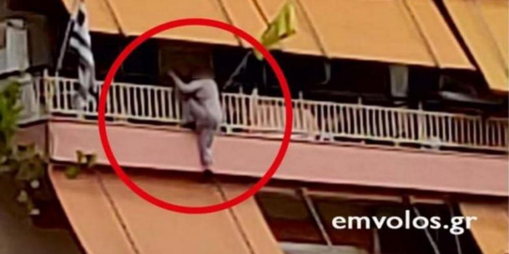 Ο αστυνομικός που έσπευσε στο σημείο, με χαρακτηριστική ψυχραιμία, κατάφερε να τραβήξει από το μπαλκόνι τη σοκαρισμένη γυναίκα.