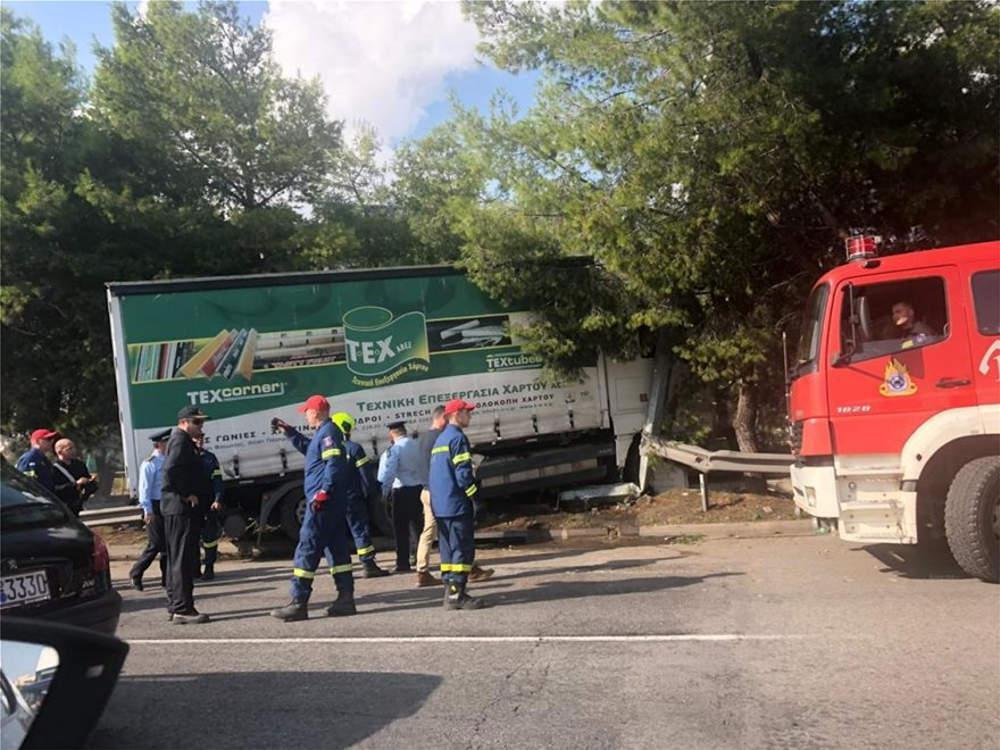 Ο οδηγός του φορτηγού, για άγνωστο μέχρι στιγμής λόγο, έχασε τον έλεγχο και αφού έπεσε διαδοχικά πάνω σε κιγκλιδώματα και σε μια κολόνα της ΔΕΗ, σταμάτησε στην άκρη του δρόμου.