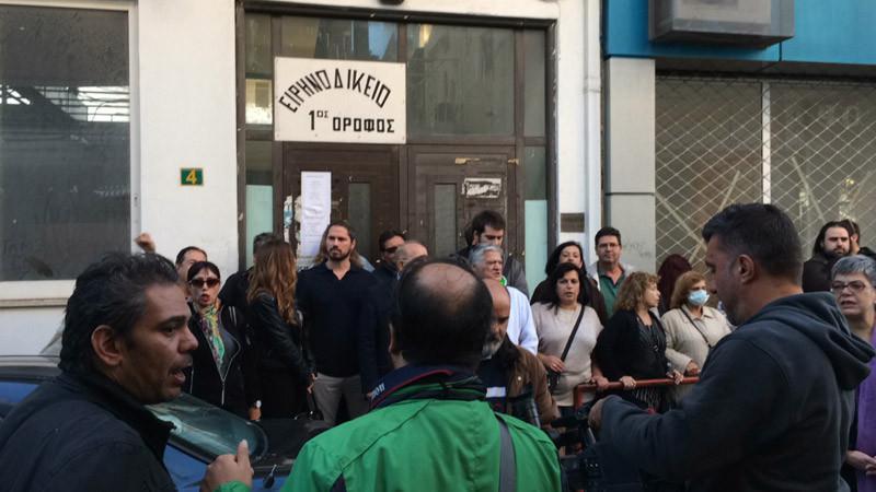 Συγκεκριμένα, στα Ειρηνοδικεία Περιστερίου, στη Λουκάρεως στο κέντρο της Αθήνας, αλλά και στη Θεσσαλονίκη, ακτιβιστές διαφόρων κινημάτων έχουν συγκεντρωθεί για ακόμα μια Τετάρτη, σε μια προσπάθεια να εμποδιστεί η οποιαδήποτε διαδικασία πλειστηριασμού.