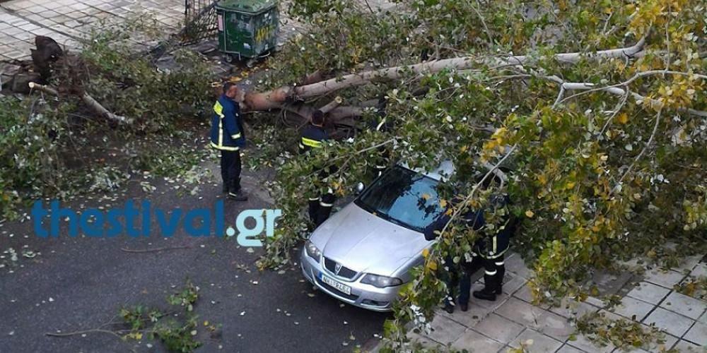 Δύο δέντρα σε διαφορετικές περιπτώσεις, έπεσαν πάνω σε σταθμευμένα οχήματα, στο κέντρο της πόλης.