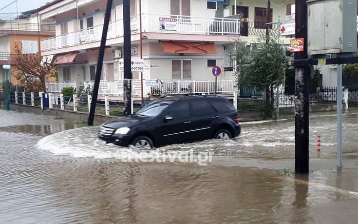 Σε «ποτάμια» μετατράπηκαν οι δρόμοι στην παραλία Κατερίνης λόγω της κακοκαιρίας «Γηρυόνης», που πλήττει αρκετές περιοχές της χώρας.