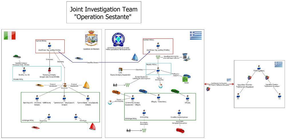 Στη χώρα μας την επιχείρηση συντόνισε το τμήμα Διαχείρισης Μετανάστευσης της διεύθυνσης Αλλοδαπών Αττικής, με τη συμμετοχή του ελληνικού γραφείου στη Eurojust, του τμήματος Εκδόσεων και Δικαστικών Συνδρομών της εισαγγελίας εφετών Αθηνών, του ειδικού ανακριτικού γραφείου διεθνών δικαστικών συνδρομών του πρωτοδικείου Αθηνών και της εισαγγελίας πρωτοδικών Αθηνών.