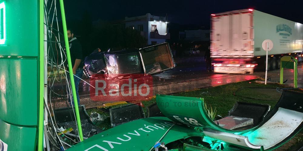 Το αυτοκίνητο σύμφωνα με αυτόπτες μάρτυρες κινούνταν στο ρεύμα για Αγιο Νικόλαο, όταν με μεγάλη ταχύτητα και για άγνωστο λόγο χτύπησε τον πυλώνα του βενζινάδικου με αποτέλεσμα και οι 2 επιβάτες, μη φορώντας ζώνες ασφάλειας, να πεταχτούν έξω από το αυτοκίνητο, τουλάχιστον 20 μέτρα μακρυά.