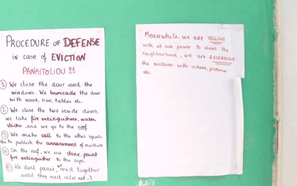 Κατά τη διάρκεια της άλλης αστυνομικής επιχείρησης στην κατάληψη Παναιτωλίου οι αστυνομικοί εντόπισαν αναρτημένο σημείωμα οδηγιών στα αγγλικά, που πρέπει να ακολουθηθούν από τους καταληψίες σε περίπτωση επέμβασης της αστυνομίας.