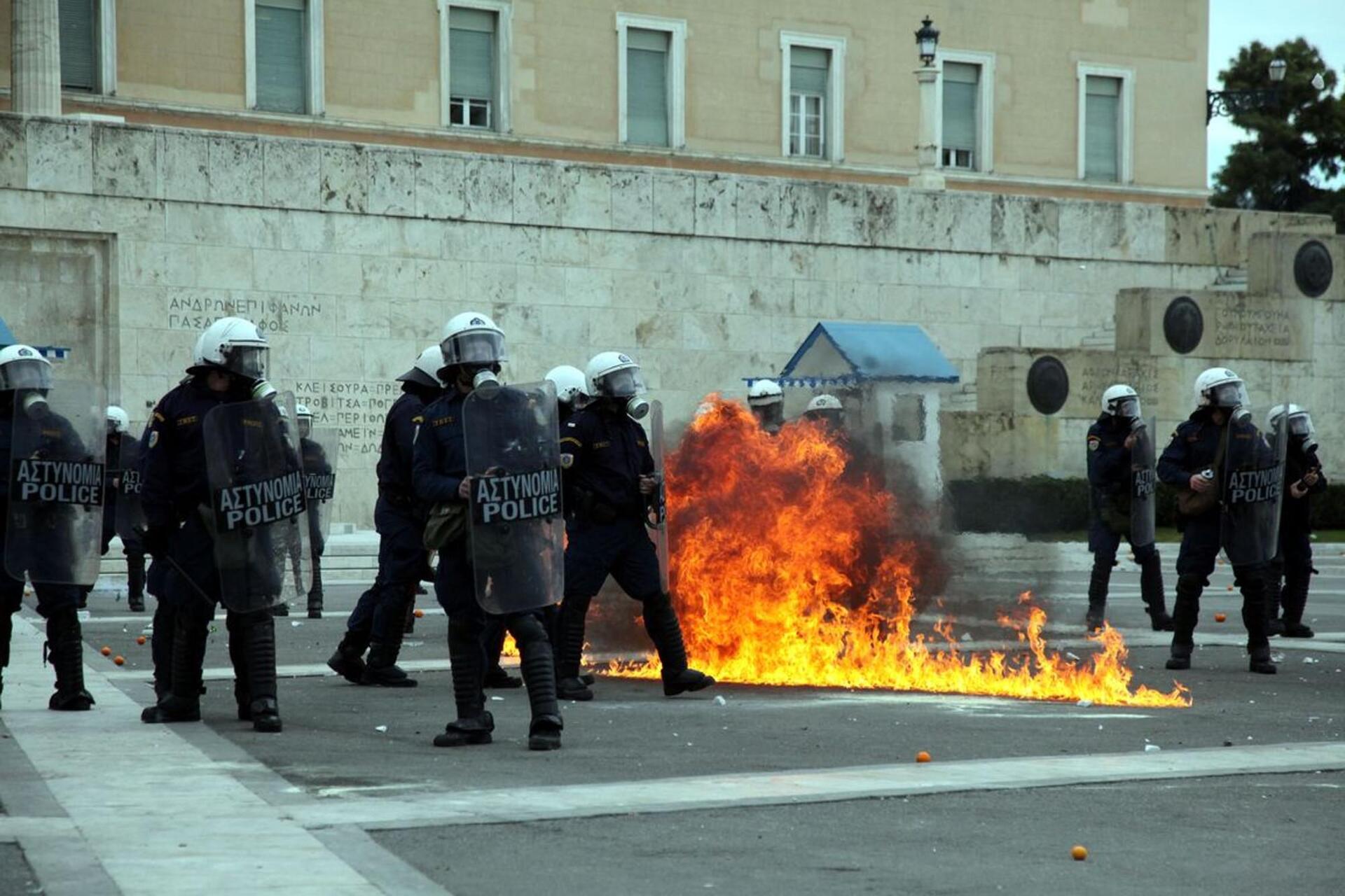 Κουκουλοφόροι μπήκαν στην πορεία και πέταξαν νεράντζια και βόμβες μολότοφ στους αστυνομικούς, οι οποίοι με τη σειρά τους «απάντησαν» με χρήση χημικών.