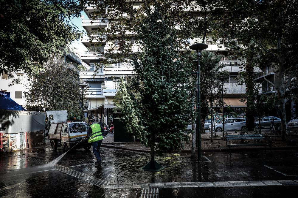Όπως θα δείτε και στις φωτογραφίες αφού τα συνεργεία του Δήμου καθάρισαν το σημείο επανατοποθέτησαν ένα χριστουγεννιάτικο δέντρο. Χθες ο δήμαρχος Αθηναίων Κώστας Μπακογιάννης έστειλε το δικό του μήνυμα και γνωστοποίησε ότι το δέντρο θα ξαναστηθεί.