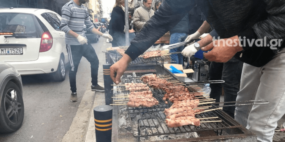 Μετά τα καθιερωμένα κάλαντα, τη σκυτάλη πήραν οι ψησταριές με τα σουβλάκια να έχουν την τιμητική τους.