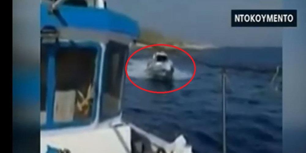 Στο βίντεο που μετέδωσε ο Alpha φαίνεται ένα από τα τουρκικά σκάφη να κινείται με ταχύτητα προς το ελληνικό καΐκι και τελευταία στιγμή να κάνει στροφή προκειμένου να μην το εμβολίσει.