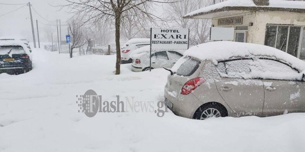 Τις πρώτες πρωινές ώρες απεγκλωβίστηκε όχημα στην είσοδο του φαραγγιού της Σαμαριάς στο Ξυλόσκαλο που είχε κολλήσει στο χιόνι, ενώ εκδρομείς παρέμειναν σε καταλύματα της περιοχής.