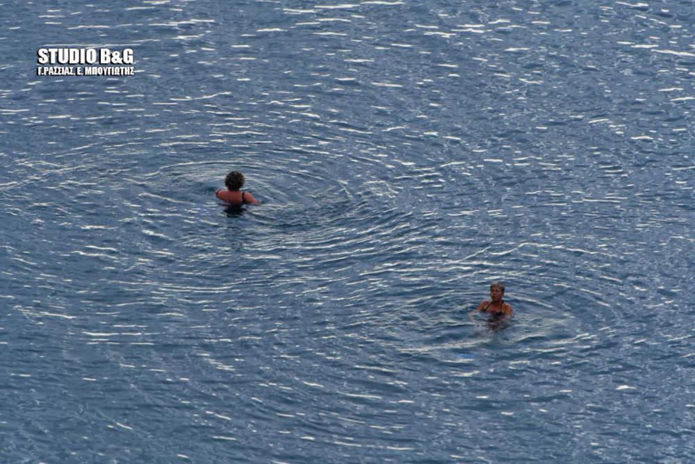 Όπως γράφει το argolikeseidhseis.gr στην παραλία Αρβανιτιάς πίσω από το κάστρο του Παλαμηδίου και με φόντο τα χιονισμένα βουνά, λίγοι αλλά θαρραλέοι επέλεξαν την πρώτη μέρα του χρόνου να βουτήξουν στα νερά της θάλασσας.