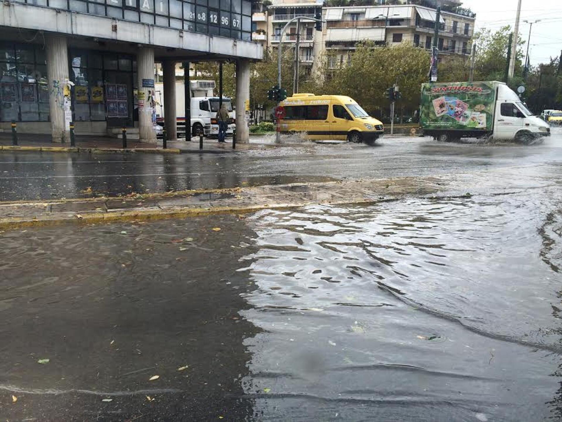 Δρόμοι στο κέντρο της Αθήνας έχουν μετατραπεί σε ποτάμια, ενώ σε επιφυλακή βρίσκεται η πυροσβεστική υπηρεσία.