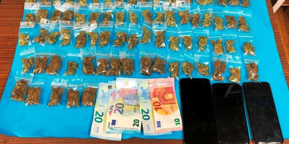 Σύμφωνα με την αστυνομία, τα δύο άτομα συνελήφθησαν με την κατηγορία της διακίνησης και τα άλλα για κατοχή ναρκωτικών ουσιών. Στην κατοχή τους βρέθηκαν συνολικά και κατασχέθηκαν 75 συσκευασίες με ακατέργαστη κάνναβη, συνολικού βάρους 140 γραμμαρίων. Κατασχέθηκαν, επίσης, το χρηματικό ποσό των 90 ευρώ και 3 συσκευές κινητής τηλεφωνίας.