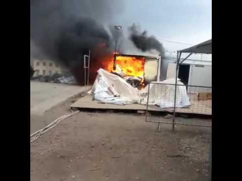 Λίγα λεπτά αργότερα ο ίδιος μετανάστης συνεπικουρούμενος από άλλους δύο ξεκίνησε τα επεισόδια σπάζοντας αρχικά τα τζάμια των κοντέινερ την ώρα που μέσα σε αυτά βρίσκονταν εργαζόμενοι. Λίγα λεπτά αργότερα ακολούθησε και η πυρκαγιά που, εξαιτίας των θυελλωδών ανέμων, εξαπλώθηκε γρήγορα και στους διπλανούς χώρους που έγιναν παρανάλωμα του πυρός.