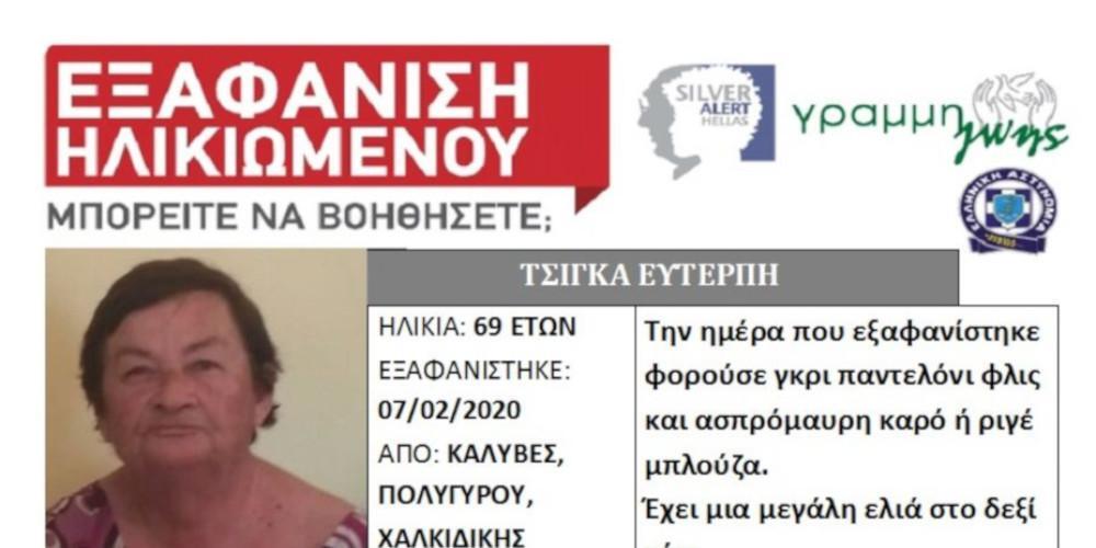 Πρόκειται για την Ευτέρπη Τσίγκα, για την εξαφάνιση της οποίας ενεργοποιήθηκε η υπηρεσία Silver Alert.