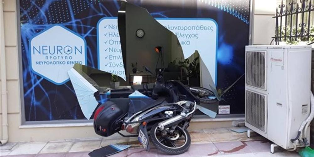 Ο ένας κατάφερε να σταματήσει πιο έγκαιρα όμως το μηχανάκι του δεύτερου κατευθύνθηκε ανεξέλεγκτο προς το ιατρείο σπάζοντας την τζαμαρία. Ο οδηγός κατέληξε στο εσωτερικό του χώρου, αλλά παρά τη σφοδρότητα δεν υπέστη σοβαρό τραυματισμό.