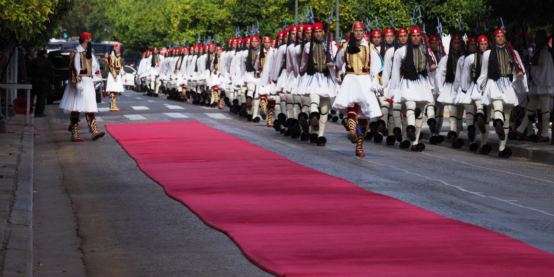 Στο δεύτερο καρέ του, καταγράφει τη στιγμή που προστίθενται λίγα μέτρα κόκκινου χαλιού ακόμα, για να μπορέσει να φτάσει στη σκάλα του Air Force One, στιγμές πριν βγει ο κ. Ομπάμα.