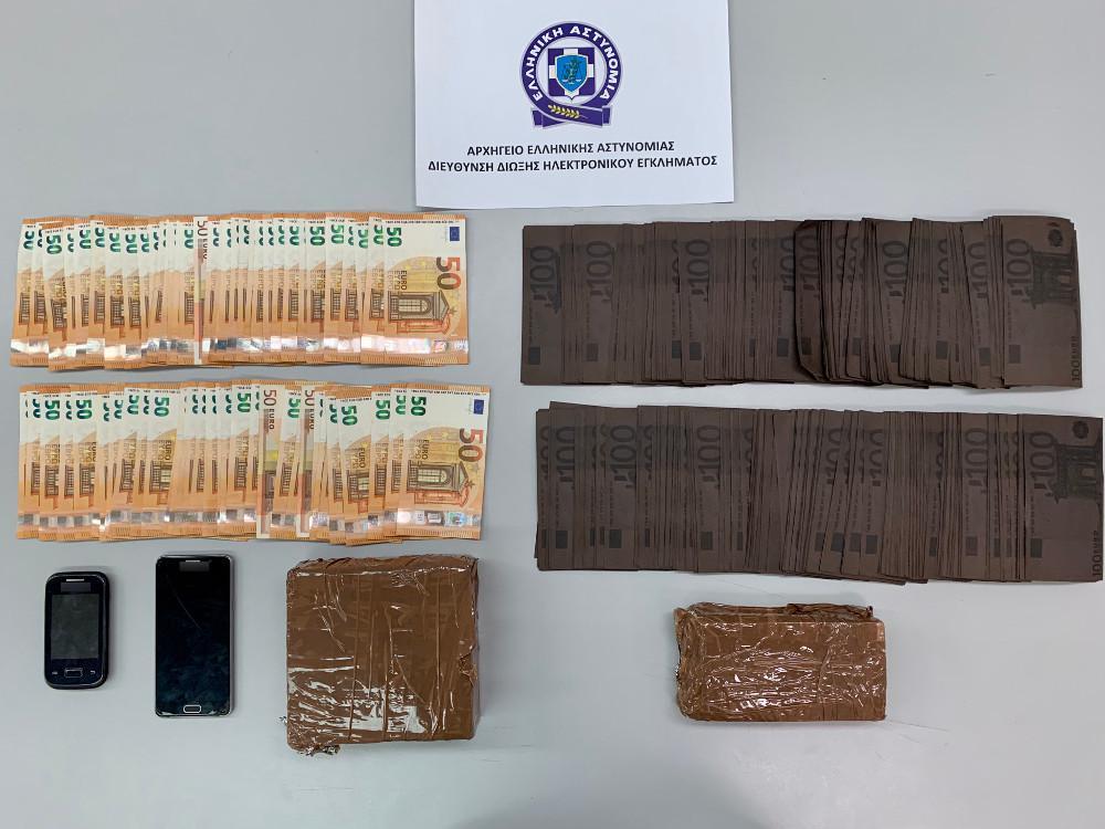 Από τις έρευνες που ακολούθησαν συνολικά βρέθηκαν και κατασχέθηκαν 3.450 ευρώ, καθώς πλήθος τεμαχίων μαύρου χαρτιού με διαστάσεις χαρτονομισμάτων των 100 ευρώ.