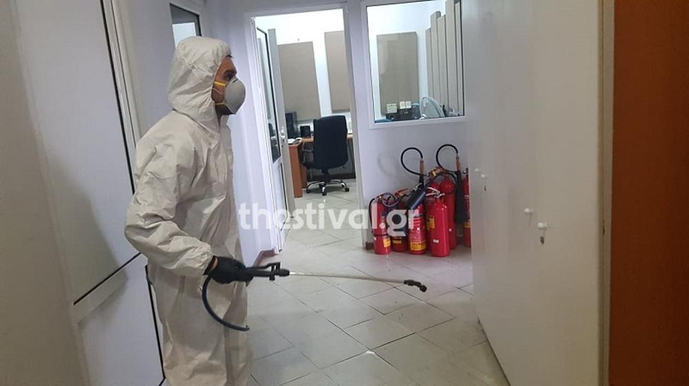 Όπως αναφέρει το thestival.gr, σε ότι αφορά την απολύμανση στις εγκαταστάσεις της ΔΕΠΘΕ, ο καθαρισμός ξεκίνησε από το ραδιόφωνο, που βρίσκεται στον ίδιο όροφο με την ΤV 100. Θα ακολουθήσει απολύμανση στους χώρους τηλεόρασης.