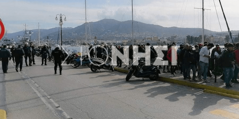 Σύμφωνα με το stonisi.gr, οι δυνάμεις της αστυνομίας επιχειρούν να τους απωθήσουν από το λιμάνι.