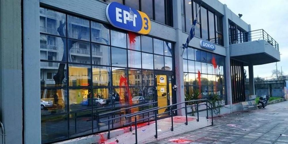 Οι δράστες πέταξαν κόκκινη μπογιά και γυάλινα μπουκάλια στις τζαμαρίες των γραφείων, ενώ στη συνέχεια χάθηκαν στα γύρω στενά.
