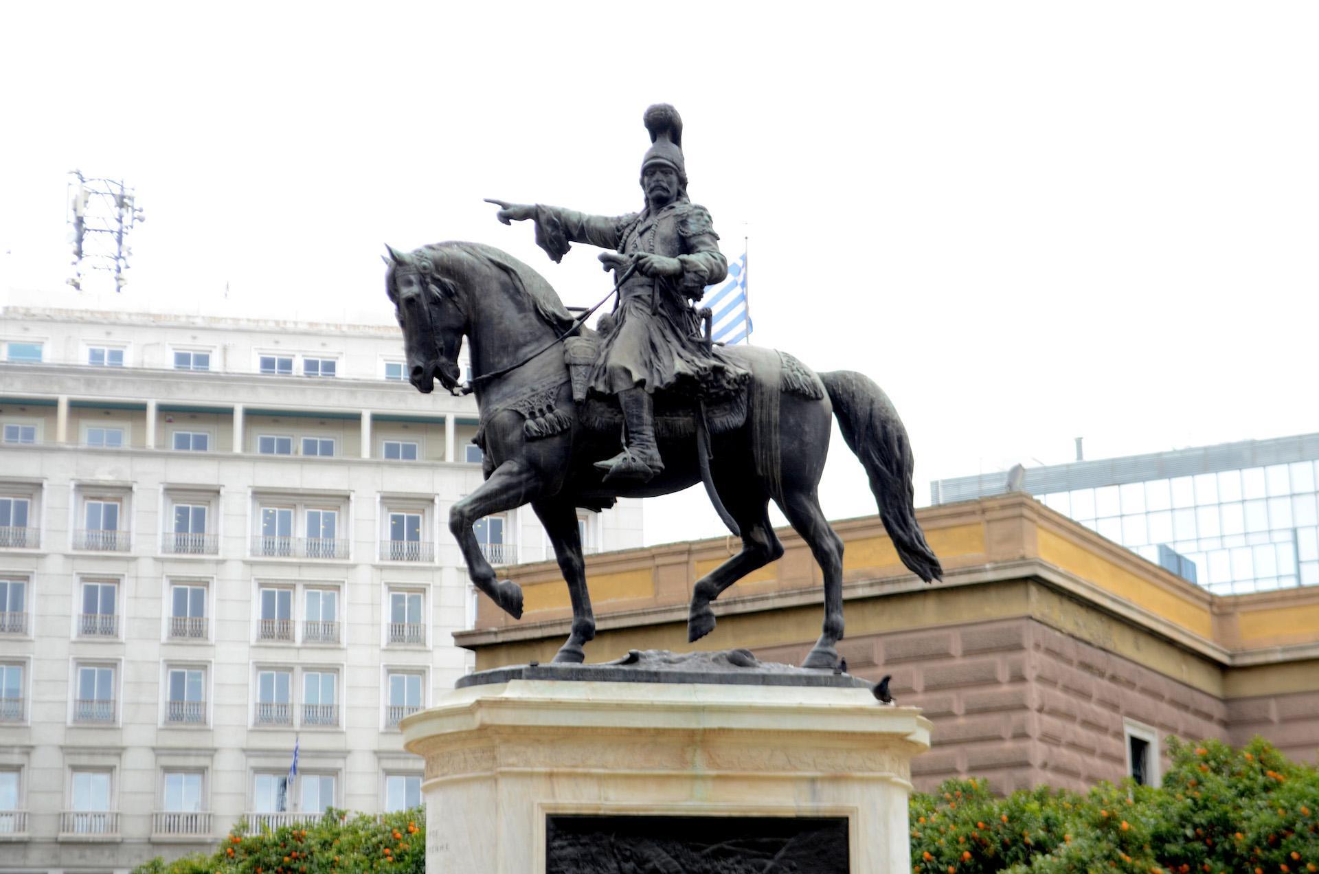 Άγνωστοι έγραψαν στη βάση του ανδριάντα, με μαύρο σπρέι, τη φράση «καμιά ελπίδα-no hope» φράση την οποία «συνόδευσαν» με σύμβολα του αναρχικού χώρου.