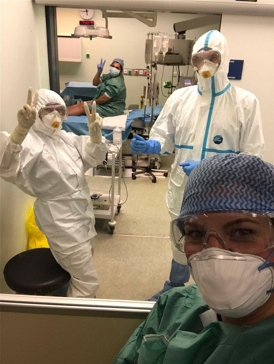 Σύμφωνα με τους κανόνες, η μητέρα φορούσε μάσκα και το προσωπικό που έκανε τον τοκετό φορούσε ειδικό εξοπλισμό για την προστασία του. Είχε προηγηθεί εκπαίδευση από την επιτροπή λοιμώξεων σύμφωνα με τις οδηγίες. «Υπήρχε μια μικρή επιπλέον δυσκολία, λόγω της στολής του προσωπικού, αλλά όλα πήγαν καλά», λέει η κ. Καλανταρίδου.