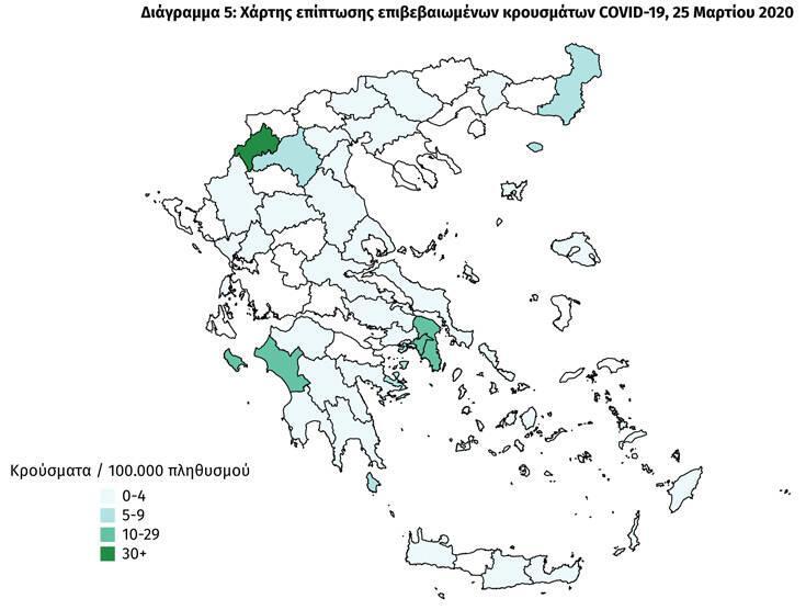 Ο Εθνικός Οργανισμός Δημόσιας Υγείας (ΕΟΔΥ), δημοσίευσε την έκθεση του στην παρουσιάζονται τα ευρήματα από την επιδημιολογική επιτήρηση της νόσου από το νέο κορωνοϊό (COVID-19) στην Ελλάδα, με βάση τα στοιχεία που έχουν δηλωθεί στον ΕΟΔΥ και καταγραφεί μέχρι τις 25 Μαρτίου 2020 και ώρα 19:00.