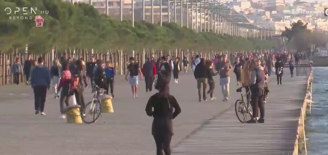 Το απόγευμα της Δευτέρας και ενώ η μέρα πλέον έχει μεγαλώσει, κάτοικοι της Θεσσαλονίκης αποφάσισαν να πάνε βόλτα. Και όλοι πήγαν βόλτα στο ίδιο σημείο: την Παραλία.