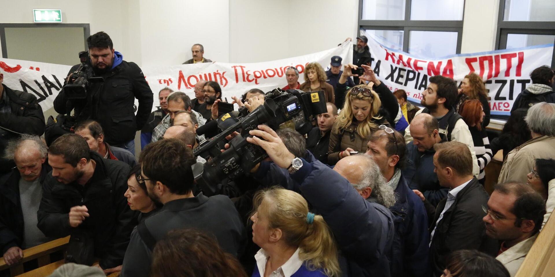 Παρών στο Ειρηνοδικείο ήταν και ο επικεφαλής της ΛΑΕ, Παναγιώτης Λαφαζάνης, ο οποίος δήλωσε χαρακτηριστικά: «Εκτός από τα κοράκια στα Ειρηνοδικεία, υπάρχουν και τα πολιτικά κοράκια, που τους καλύπτουν τα Μνημόνια».