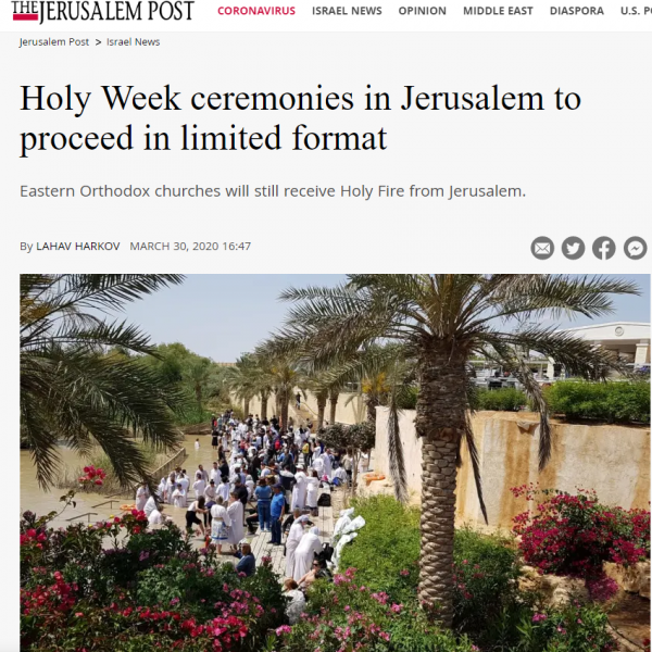 Σύμφωνα με δημοσίευμα της Jerusalem Post το οποίο επικαλείται πηγές της στο ισραηλινό υπουργείο Εξωτερικών παρά τα αυστηρά μέτρα ασφαλείας που επικρατούν στην χώρα, το θέμα της μεταφοράς του Αγίου Φωτός θεωρείται λυμένο.