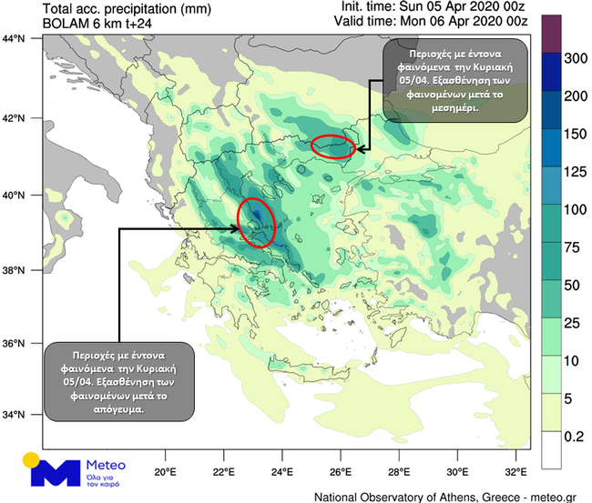 Τα μεγαλύτερα ύψη βροχής έχουν καταγραφεί στη Σιμωνόπετρα (106 χιλιοστά), στην Κύμη (97) και στη Σκιάθο (92)