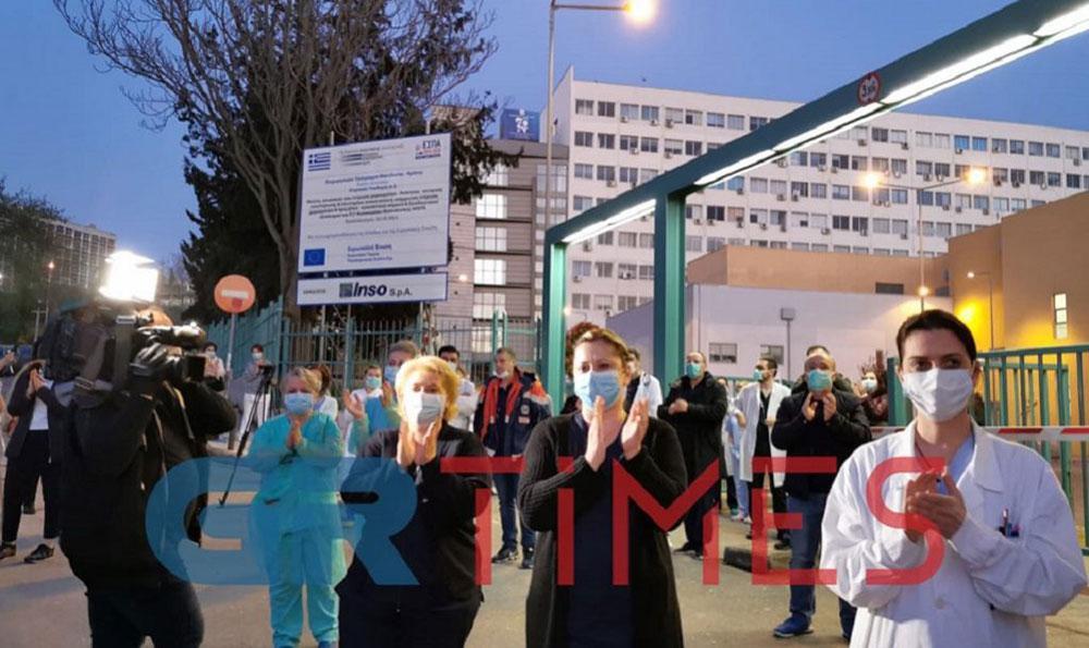 Σημειώνεται, ότι γιατροί και νοσηλευτές που βγήκαν στην είσοδο φορώντας τη στολή τους, γάντια και μάσκα, τους ανταπέδωσαν συγκινημένοι το χειροκρότημα