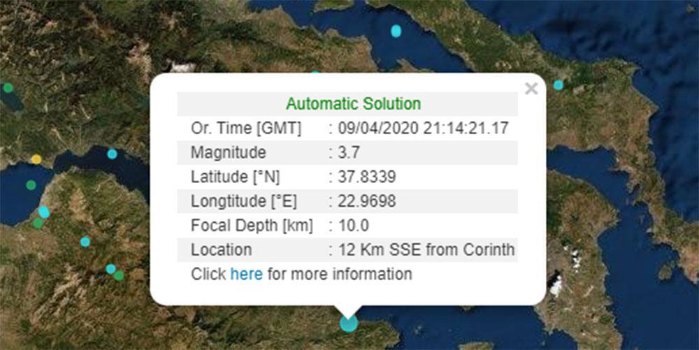 Σύμφωνα με το Γεωδυναμικό Ινστιτούτο, ο σεισμός είχε εστιακό βάθος 10 χιλιομέτρων και το επίκεντρο εντοπίζεται 12 χιλιόμετρα νοτιοδυτικά της Κορίνθου.