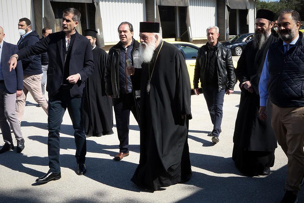 Αρχιεπίσκοπος Ιερώνυμος: «Με ιδιαίτερη συγκίνηση βρίσκομαι εδώ σε αυτόν το χώρο σήμερα που θα μπορούσα να πω ότι είναι ένας χώρος μιας αγάπης που εκδηλώνεται με έναν άλλον τρόπο, διαφορετικό. Και ακόμα περισσότερο και ευχαρίστηση και η συγκίνηση γίνονται περισσότερες διότι δίνεται μία ευκαιρία ακόμη να πω ένα μεγάλο ευχαριστώ στον δήμαρχο μας, τον κύριο Μπακογιάννη γι’ αυτό που γίνεται σήμερα σε αυτόν τον χώρο που εγώ θα το έλεγα κάτι που μας έλεγαν οι παλιότεροι, οι αρχαίοι μας, ότι “η δύναμις εν τη ενώσει”.