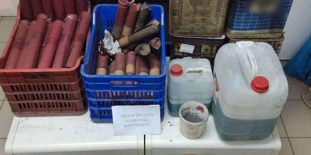 Οπως αναφέρει η Αστυνομία, πρόκειται για δύο ξεχωριστές περιπτώσεις και δικογραφίες. Η μια αφορά έναν 48χρονο και η άλλη δύο 27χρονους Καλαματιανούς. Οι αστυνομικοί της Υποδιεύθυνσης Ασφάλειας Καλαμάτας ερεύνησαν τις αποθήκες ύστερα από αξιοποίηση στοιχείων. Σε αυτή που χρησιμοποιούσε ο 48χρονος βρήκαν συνολικά και κατάσχεσαν: 69 σαΐτες, οι 16 χρησιμοποιημένες, οι 43 κενές περιεχομένου και 7 έτοιμες προς χρήση, 3 μεταλλικά δοχεία με μπαρούτι, συνολικού βάρους 30.500 γραμμαρίων και πλαστικό δοχείο με 11 λίτρα πετρέλαιο.