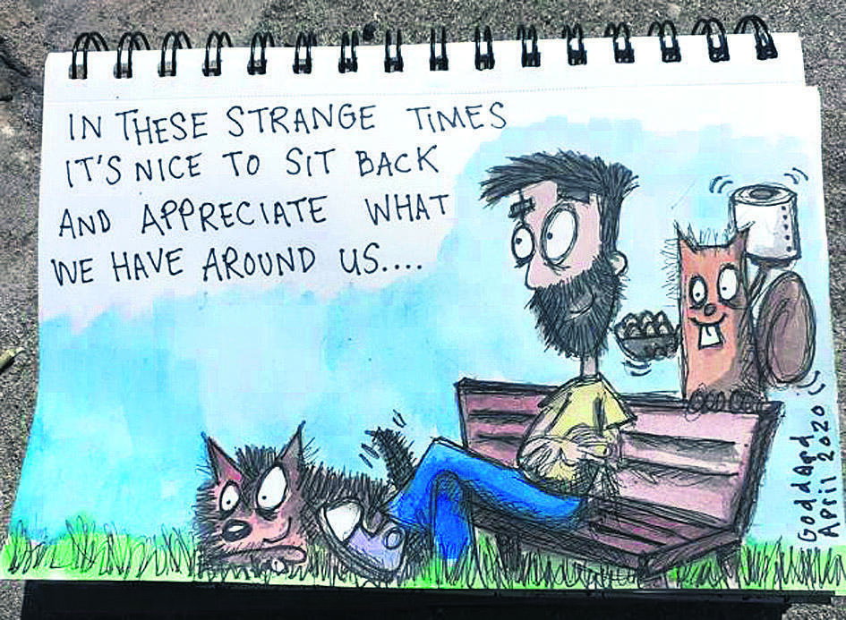 Ο Ντάρεν Γκόνταρντ έμεινε χωρίς στέγη λίγο πριν από την έλευση της πανδημίας, ωστόσο πλέον έχει βρει σπίτι μαζί με τον σκύλο του, τον Πάρντι. Ο 48χρονος από το Εσεξ της Βρετανίας αναρτά καθημερινά στον λογαριασμό του στο facebook σκίτσα καρτούν που φτιάχνει ο ίδιος, τα οποία είχαν απίστευτη απήχηση μεταξύ των χρηστών. «Ελπίζω να μπορέσω να εκδώσω το βιβλίο μου “Η γελοία μου ζωή σε καραντίνα” σαν υπενθύμιση των περίεργων καιρών που ζούμε», δήλωσε στο BBC. Ο Ντάρεν ξεκίνησε να ζωγραφίζει τα σκίτσα του, που αναπαριστούν στιγμές από την καραντίνα, εν μέσω των μέτρων αυτοαπομόνωσης. «Κάνουν πολλούς ανθρώπους να γελούν και ανυπομονούν να δουν το νέο μου καρτούν», δηλώνει.