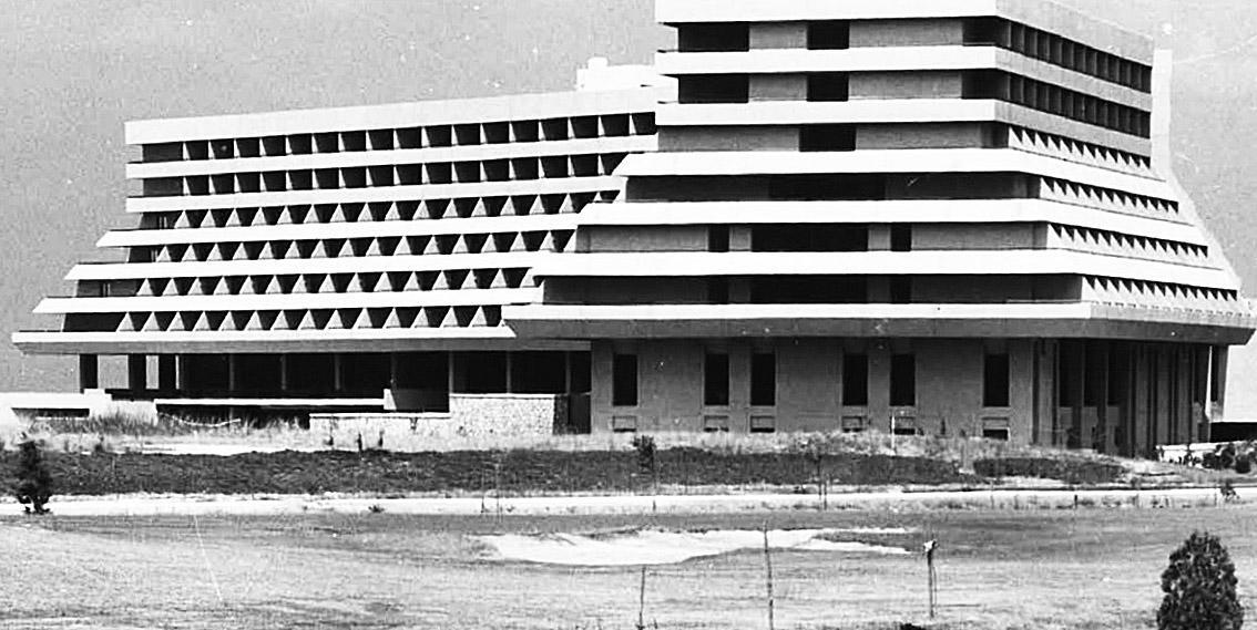 Απαιτήθηκαν τρία ολόκληρα χρόνια, ώστε τα συνεργεία που μίσθωσε ο Γιάννης Καρράς να μπορέσουν να αποστραγγίσουν τους βάλτους της περιοχής, να ανοίξουν δρόμους και να δημιουργήσουν τις απαραίτητες υποδομές για να ξεκινήσει να χτίζεται το ξενοδοχειακό συγκρότημα. Ο εφοπλιστής είχε αναθέσει στον διακεκριμένο αρχιτέκτονα και ιδρυτή του ρυθμού Bauhaus, Walter Gropius, τα σχέδια των κτιρίων.