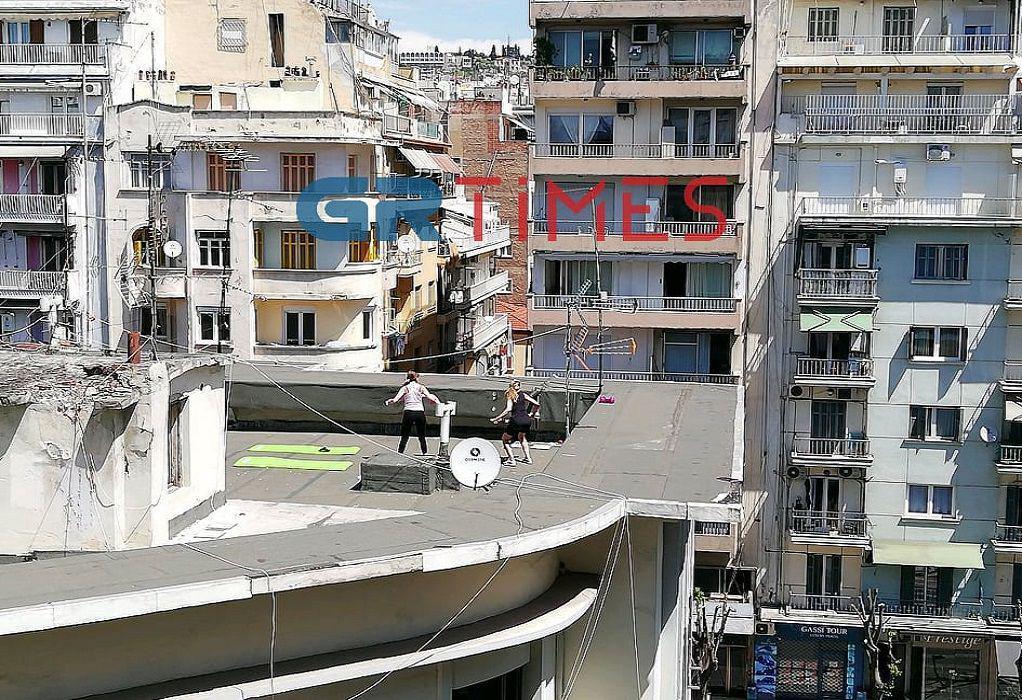 Σε πρωτόγνωρες συνθήκες εορτάζεται η φετινή επέτειος της Πρωτομαγιάς. Στη Θεσσαλονίκη, δυο γυναίκες βγήκαν στη ταράτσα τους και με σύμμαχο τον ηλιόλουστο καιρό, γυμνάστηκαν κι έκαναν και yoga, ξεφεύγοντας για λίγο από το σπίτι, αλλά και τηρώντας τις τελευταίες μέρες της καραντίνας, καθώς τα περιοριστικά μέτρα θα ισχύσουν στο ακέραιο έως τη Δευτέρα.