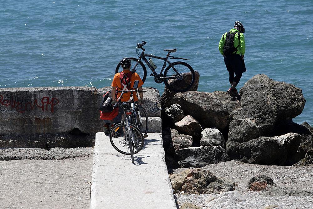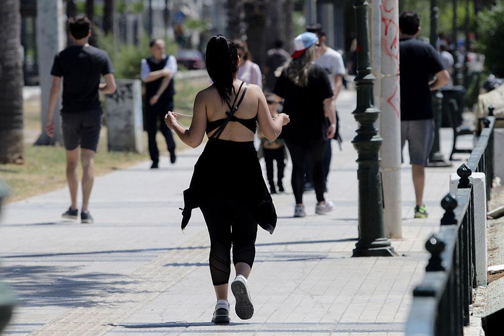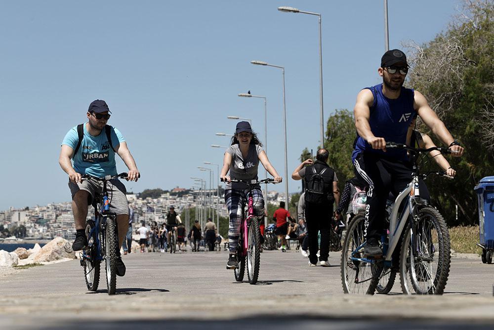Βόλτες με τα πόδια, με ποδήματα αλλά και ηλιοθεραπεία με ρούχα ή με μαγιό. Κάποιοι τηρούν την απόσταση ασφαλείας και άλλοι όχι τόσο.