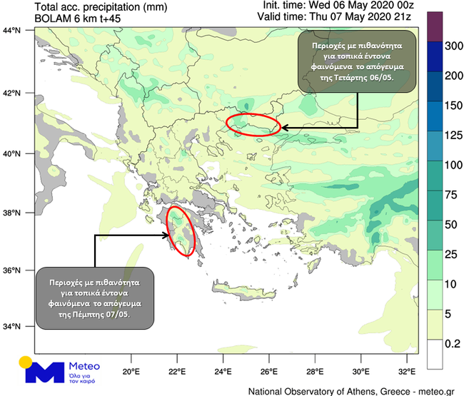 Τις βραδινές ώρες και τις πρώτες πρωινές ώρες της Πέμπτης, τα φαινόμενα θα επεκταθούν νοτιότερα και στα νησιά του Ανατολικού Αιγαίου, όμως θα είναι εξασθενημένα και θα έχουν τοπικό χαρακτήρα, ενώ θα έχουν σταματήσει στα βόρεια.