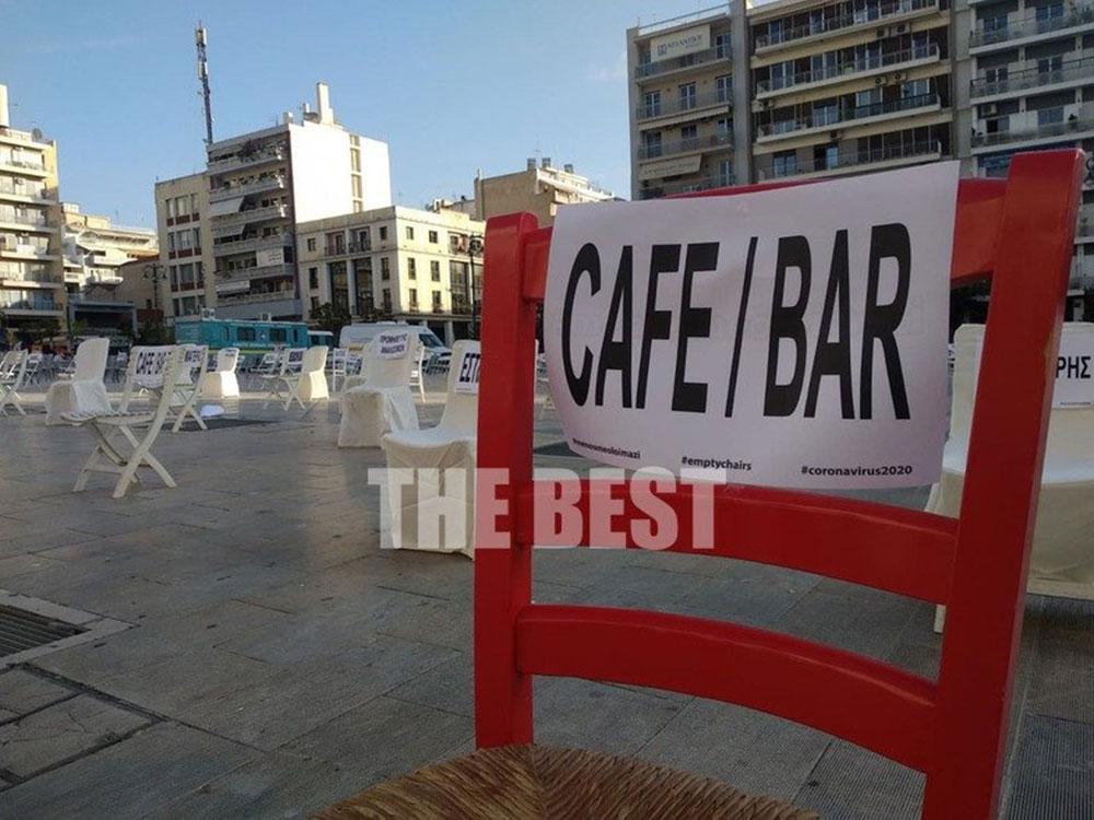 Με τη συμβολική ανάπτυξη 1.000 άδειων καρεκλών στην πλατεία Γεωργίου, στις 8 το βράδυ της Τετάρτης, οι ιδιοκτήτες καταστημάτων εστίασης αναψυχής της Πάτρας, παίρνουν ενεργά μέρος στην κινητοποίηση