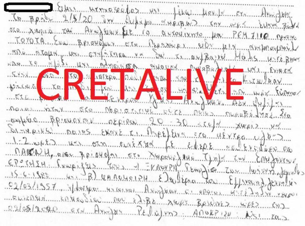 «Είδα μια αναμπουμπούλα και σταμάτησα να δω τι συμβαίνει. Μόλις κατέβηκα και πλησίασα άκουσα πυροβολισμούς κι ένιωσα έναν πόνο στο αριστερό μου πόδι κι έπεσα κάτω. Μετά από ώρα ξύπνησα στο φορείο του Κέντρου Υγείας Ανωγείων».