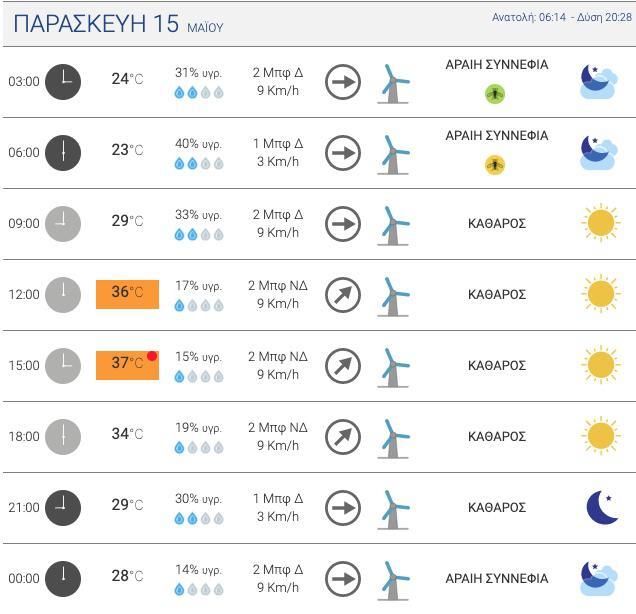 Σύμφωνα με τις προγνώσεις του meteo.gr το μεσημέρι της Παρασκευής θα δείξει έως και 37 βαθμούς και το μεσημέρι του Σαββάτου το θερμόμετρο στο κέντρο της Αθήνας θα δείξει 40 βαθμούς!