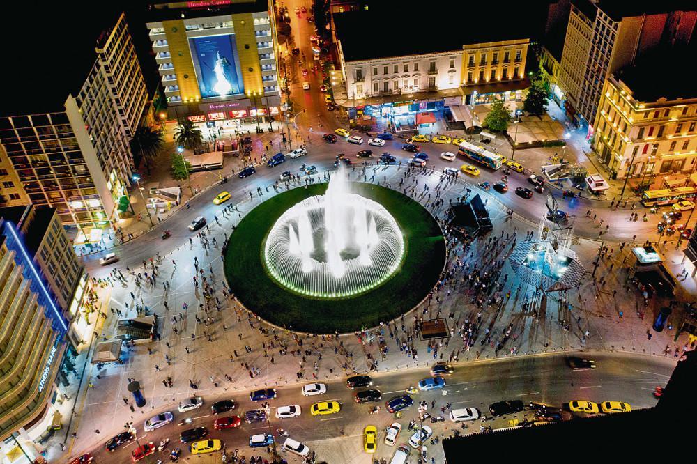 Τα προστατευτικά που είχαν τοποθετηθεί «έπεσαν», η πλατεία Ομονοίας αποκαλύφθηκε με το τεράστιο σιντριβάνι να κλέβει τις εντυπώσεις. Πρόκειται για ένα από τα μεγαλύτερα σε όγκο νερού στην Ευρώπη με διάμετρο 30 μέτρων που ο κεντρικός του πίδακας τινάζει το νερό σε ύψος ως και 20 μέτρα ενώ συνολικά διαθέτει 188 δέσμες νερού και 177 υποβρύχιους προβολείς που δημιουργούν μια πανδαισία φωτός και χρωμάτων.