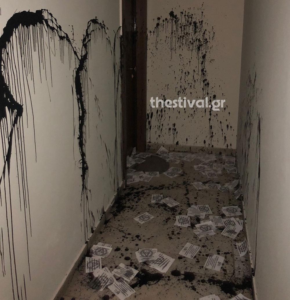 Ειδικότερα, συνεργάτης του κ. Σιμόπουλου πήγε στο γραφείο στην οδό Τσιμισκή, όπου και διαπίστωσε ότι πέταξαν μαύρες μπογιές στους τοίχους και την είσοδο του γραφείου καθώς και τρικάκια.