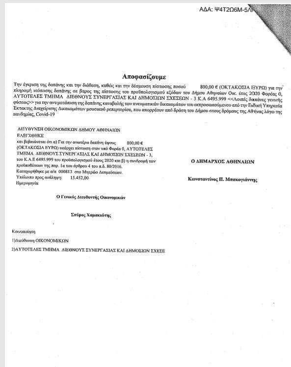 Παρόλα αυτά με βάση τα έγγραφα που αναρτήθηκαν στη Διαύγεια μπορεί κάποιος να δει τόσο την απόφαση για το ένταλμα των 800 ευρώ όσο και την απόδειξη πληρωμής για τα δικαιώματα των τραγουδιών του μουσικοσυνθέτη που ακούστηκαν στη γνωστή συναυλία της Αλκηστις Πρωτοψάλτη, κατά την οποία τραγούδησε σε πολλές γειτονιές της Αθήνας.