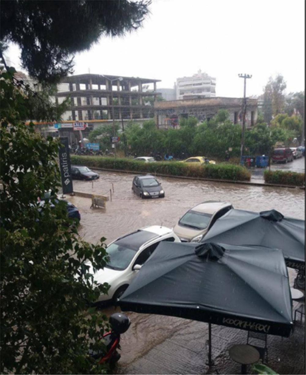 Μικρής διάρκειας νεροποντή στην Αθήνα ήταν αρκετή να προκαλέσει πλημμύρες και μποτιλιάρισμα στην Λεωφόρο Αμφιθέας.