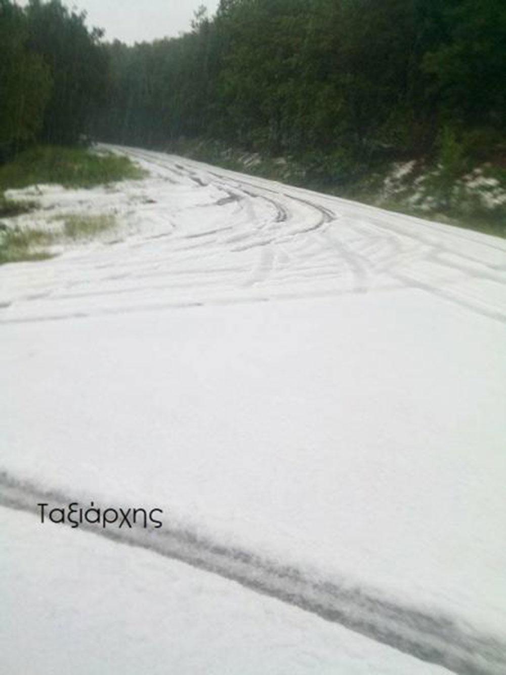 «Άσπρισε» ο δρόμος στη Χαλκιδική
